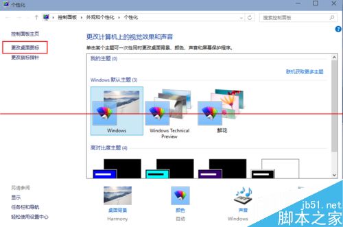 2、進入到個性化后,點擊左邊的更改桌面圖標