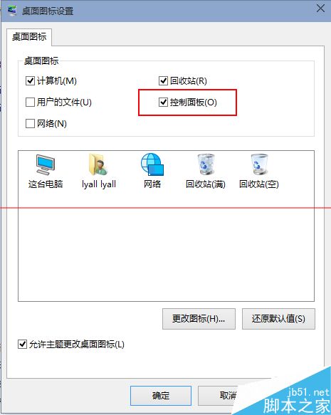 3、把控制面板打勾,這樣桌面就有一個控制面板 了,控制面板是我們常用的,放到桌面設置什么東西都方便。
