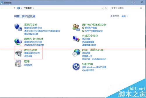 4、雙擊桌面的控制面板,進入控制面板,并選擇“聲音和硬件”