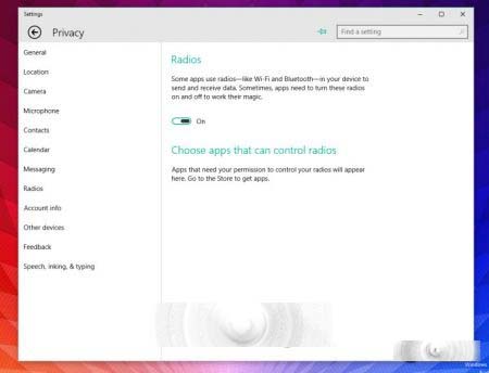 在build 10061中,微軟為“隱私”設置添加了“無線模塊”、“賬戶信息”和“消息”等選項。此外,Webcam(網絡攝像機)被重命名為Camera(相機)。
