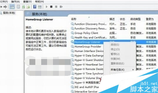 2、找到“HomeGroupListener” 服務(wù),雙擊打開或右鍵單擊“屬性” 命令。