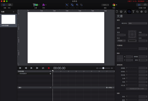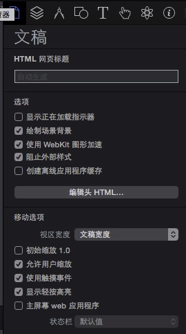 Hype 3 的默認界面采用專業(yè)黑色設計,分為5個主要區(qū)域,包括頂部的工具條,左側的場景切換,中間的內(nèi)容區(qū)和動畫控制區(qū)。最右側是對元素、符號以及頁面屬性的一些控制。Hype 3 的整體界面操作有些類似 Xcode,不過有了更簡化的操作流程,用戶只需要在空白區(qū)域錄入內(nèi)容,然后選擇內(nèi)容的動畫變化即可。