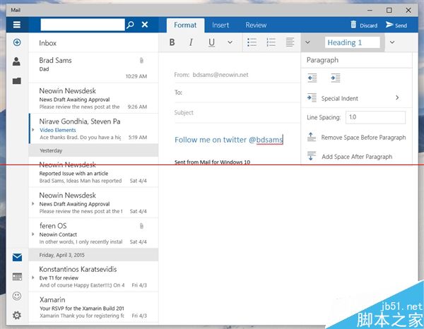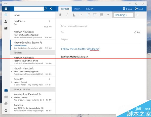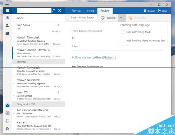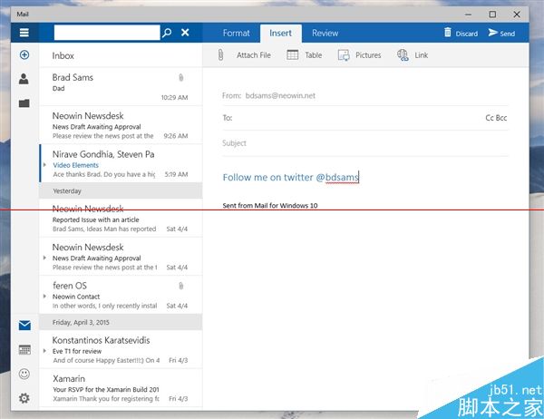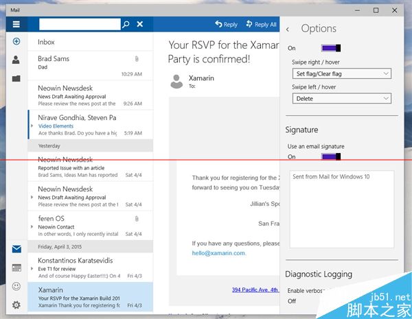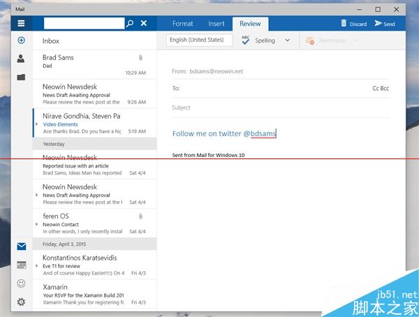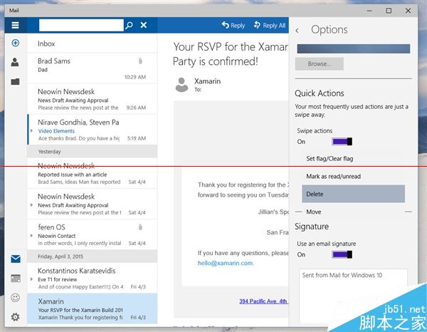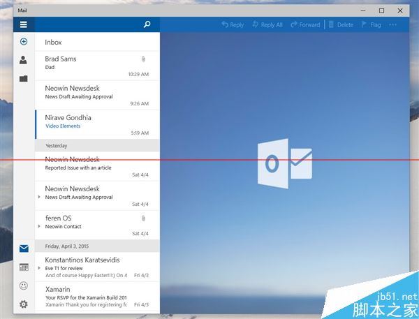 據(jù)說Build 10051主要帶來了應(yīng)用界面改版以及通用應(yīng)用,其中變化最大的就要數(shù)系統(tǒng)自帶的“郵件”應(yīng)用了。