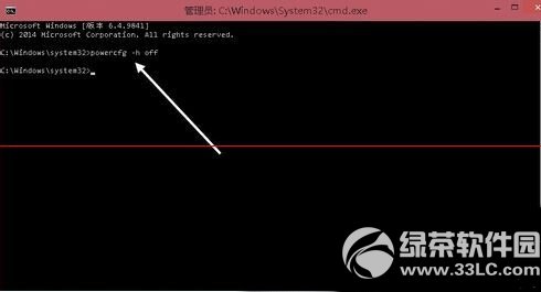 4、命令窗口中輸入 powercfg -h off,即可關閉休眠功能,同時 Hiberfil.sys 文件也會自動刪除。