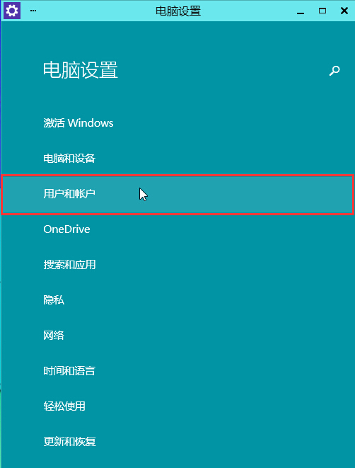2.在電腦設置界面中,點擊打開“用戶和帳戶”進入下一步操作。如下圖所示