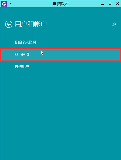 3.在用戶和帳戶界面下,點擊打開“登錄選項”進入下一步操作。如下圖所示