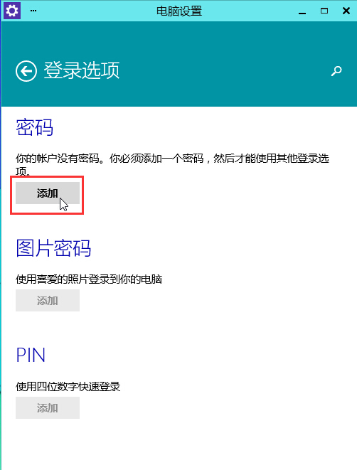 4.在登錄選項界面下,點擊“添加”進入下一步操作。如下圖所示