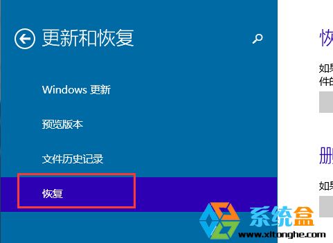 3、然后在“更新和恢復”界面中選擇【恢復】;