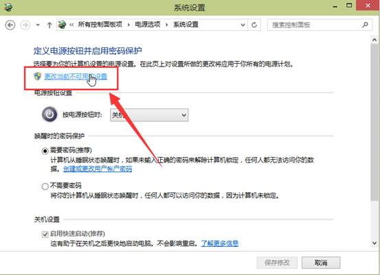 5.點擊“更改當前不可用的設置”進入下一步操作。如下圖所示
