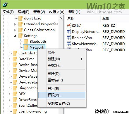 ▲右鍵單擊Network文件夾圖標,選擇“權限”,