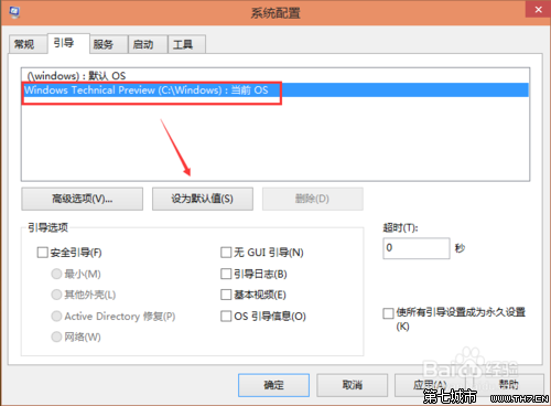 3、在引導界面上,選擇要設置默認啟動系統,然后點擊設為默認值。如下圖所示。