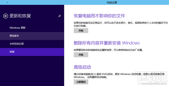(2)如果使用第一項之后仍然不能解決問題則需要使用第二項“刪除所有內容并重新安裝Windows”,此選項相當于重裝系統,會把保存在桌面、我的文檔等系統盤中的軟件、照片神馬的全部刪除,你可以先把重要的文件復制到非系統盤(D/E/F/G...)。如果你的文件已經存放在非系統盤(D/E/F/G...)則無需擔心。