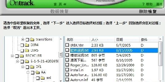 2.在右側選擇任何一種數(shù)據(jù)修復方式都會出現(xiàn)相應的用法提示,如我使用(刪除恢復)項來查找并恢復已刪除的文件時,就會在界面右側出現(xiàn)相應的使用提示。