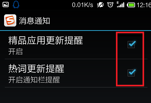 5、把如圖所示的兩個更新提醒后面的√取消。這樣就能讓自己的手機更安靜。