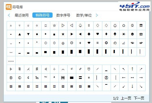 第三步:打開“符號庫”就會有各種類型的特殊符號,大家可以看到很多漂亮的小符號
