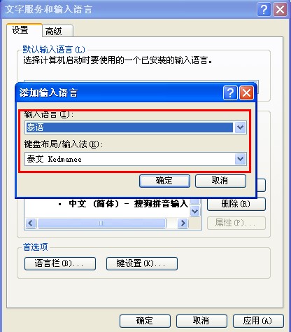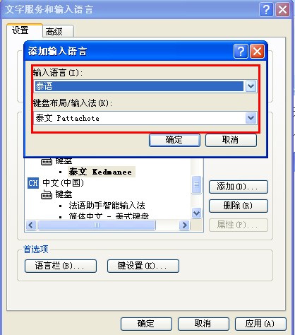 鍵盤配置/輸入法選 "泰文Kedmanee"及"泰文Pattachote"(一次增加一個(gè))——再按確定即可