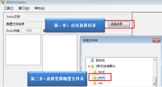 1.根據下圖提示,載入默認的豎屏(port)皮膚文件(若要編輯橫屏皮膚,請選擇land),選擇port后點擊【確定】。