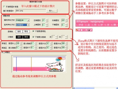 注意事項:請一定注意參數的調整及拼音區和候選區的設置,好的設計是一個皮膚的靈魂,好的參數設置是皮膚使用的關鍵。