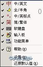 ② 分別在“簡/繁體”、“軟鍵盤”、“輸入板”上單擊,輸入法狀態條中這些選項都顯示出來。