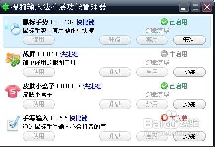 我們先來看看總共有哪四項。我們通過開始——程序——搜狗拼音輸入法——擴展功能管理。來開啟。