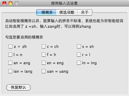 雙擊安裝,然后要求注銷,注銷之后,你需要在語言和文本里面找到搜狗輸入法,不大好找,隱藏在一堆其他國家語言中間,而不是在中文那里,這個不好。好了,裝完了,也選擇上了,看看都有啥功能吧。相比QQ輸入法,搜狗好歹也算有了設置的選項,只是還比較簡單,只有模糊音和候選字數可設置,不能設置輸入框字體大小,這讓我們這些高分辨率屏幕的13寸MBA情何以堪啊。QQ輸入法微博說下個版本就增加