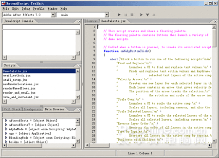 After Effects 7.0 整合了腳本編輯器,可以使用它編寫Javascript腳本,系統(tǒng)根據(jù)腳本程序自動執(zhí)行任務(wù),加快工作的進(jìn)行。這是一個適合高級用戶使用的工具,就許多普通用戶而言,恐怕很少會使用到它。