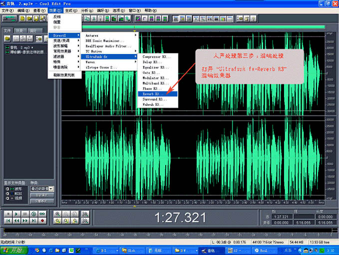 1. 點擊 “ 效果 --DirectX--Ultrafunk fx--Reverb R3” 打開混響效果器(圖 21 )。