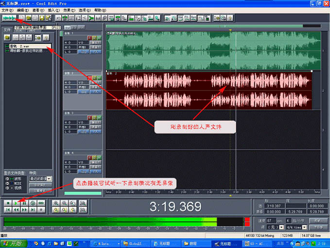 4 、錄音完畢后,可點左下方播音鍵進行試聽,看有無嚴重的出錯,是否要重新錄制(圖 4 )