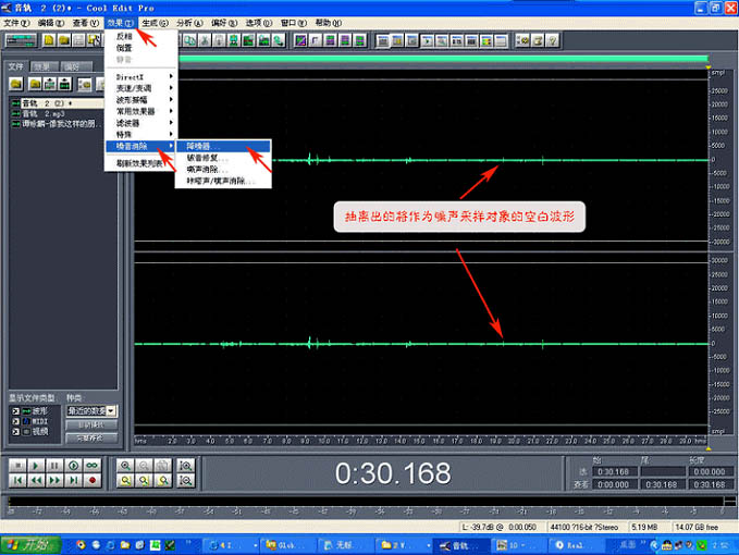 4.打開“效果--噪聲消除--降噪器”準備進行噪聲采樣(圖10)。