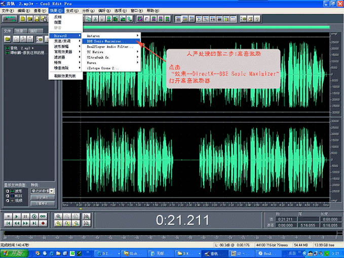 (圖 15 )1. 點擊 “ 效果 --DirectX--BBE Sonic Maximizer” 打開 BBE 高音激勵器(圖 16 )。