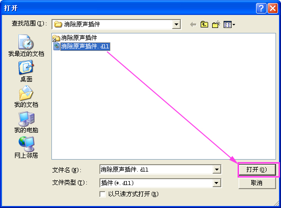 進入到“音頻插件設(shè)置”窗口中,我們來安裝這一款消除原音插件——點擊這里添加插件,在打開窗口中打開下載好的插件: