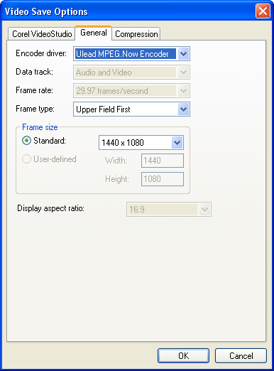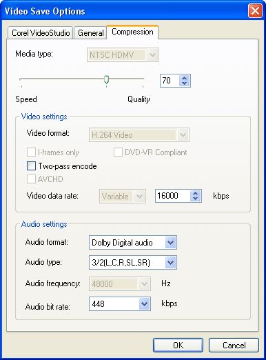 注意:您可能會注意到,“常規”和“壓縮”選項卡中的其他選項灰顯或被禁用。會聲會影已自動禁用這些選項,并在您選擇 AVCHD 作為輸出格式時將這些選項設置為 AVCHD 視頻的標準設置。