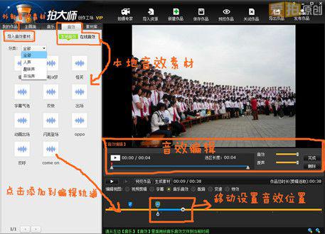 第4步:【音效添加】如下圖4,想要一些搞怪聲音特效增加MV活潑氣氛的可以在音效界面添加人聲、趣