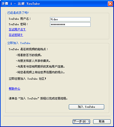 在提供的文本框中輸入您的YouTube用戶名和密碼。如果您沒有YouTube帳戶,則可以單擊“加入YouTube”按鈕來創(chuàng)建帳戶,并輸入您在YouTube中創(chuàng)建的帳戶的用戶名和密碼。