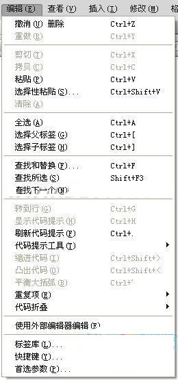 “編輯”菜單 包含選擇和搜索命令,例如“選擇父標簽”和“查找和替換”?!熬庉嫛辈藛芜€提供對DW菜單中“首選參數”的訪問。