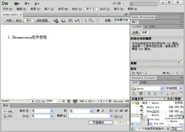 打開dreamweaver,我們可以在下方的屬性欄中找到“項目符號”和“項目編號”選項,如下圖所示。