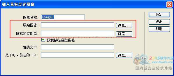 選擇好網頁中初始顯示圖像和鼠標滑過是出現的圖像后,點擊確定按鈕。
