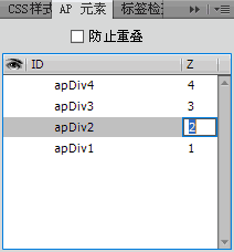 提示:在“AP 元素”面板中,AP元素是按照Z軸的順序排列的,Z軸上的數字越大,排列越靠近頂部,反之,Z軸上的數字越小,排列越靠近底部。