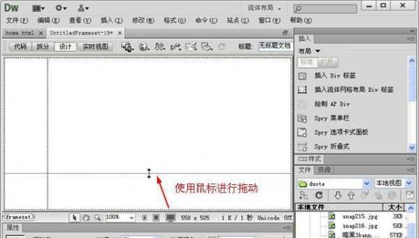 插入框架后,我們就可以用鼠標(biāo)進行拖動,可以拖出你所想要的樣式。