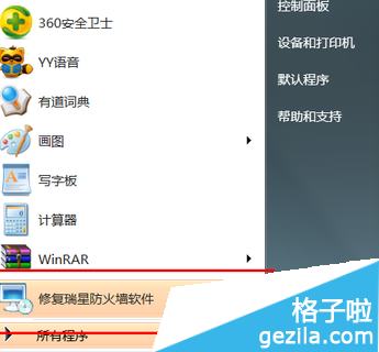 1、點擊開始菜單,找到修復瑞星防火墻這個軟件的功能選項。