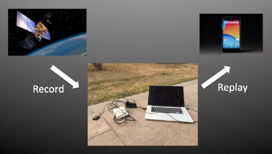 過去做一個GPS模擬器并不是一件容易的事,GPS信號有復雜的格式,發射方法。一個商用級的GPS模擬器售價高達百萬元人民幣。比較簡單的一種方法是“重放攻擊”,也就是錄制一段GPS信號,然后再播放出來,就像下圖的示例。