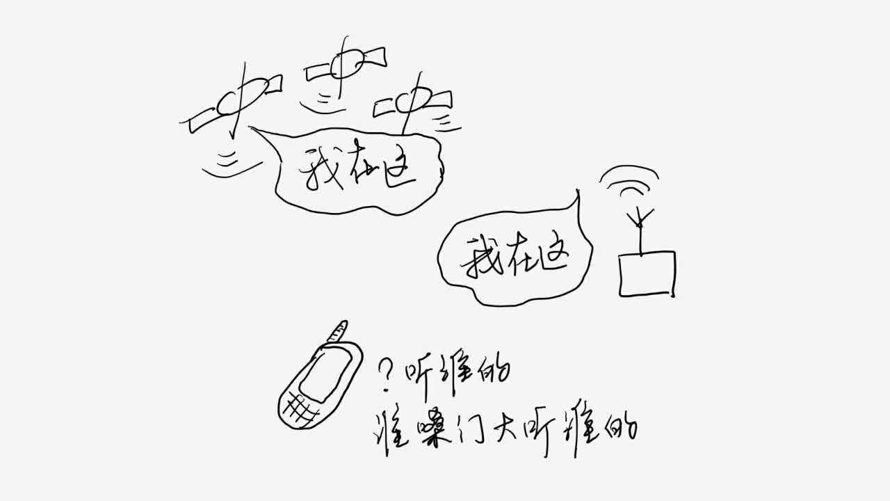 GPS衛星通過不斷的廣播信號,告訴接收機,自己在什么位置。這是一個單向的廣播信號,而且經過了太空到地面這么遠的傳播,信號已經變得非常非常弱。此時,如果有一個GPS模擬器,在接收機旁邊,假裝成衛星,那么這個模擬器的信號很容易蓋過真正的GPS信號。就像下面這張圖的情況,接收機只能聽到那個嗓門大的。