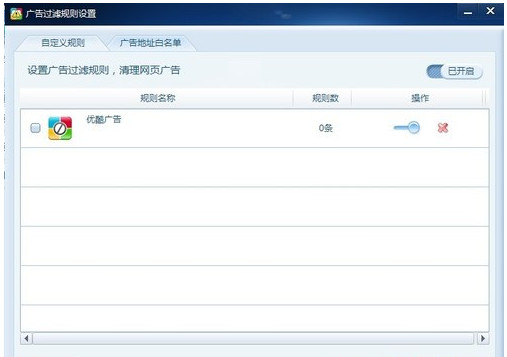 由于大部分網絡廣告都以彈出或嵌入形式出現,因此自定義規則中對彈出式廣告與嵌入式廣告進行細化分類,用戶可以根據不同類型進行相應的設置,從而得到一個綠色的上網環境。“廣告過濾”功能主要包含了自定義規則和廣告地址白名單兩類設置。其中,自定義規則可由用戶自行對廣告規則進行編輯,將本地規則文件和帶有廣告的網頁通過導入、添加進行設置,并通過系統化的分類將需要過濾的頁面進行統一分組,做到整組開啟、禁用、刪除或修改。