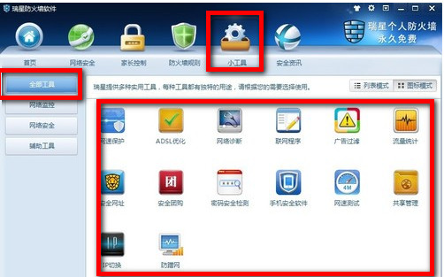 瑞星個人防火墻V16還擁有實用的網絡工具箱,支持流量統計、ADSL優化、IP自動切換、家長控制、網速保護、共享管理等多種功能,為用戶帶來全面的功能體驗。其中智能廣告攔截功能相當犀利,能夠實時屏蔽視頻、網頁和軟件廣告(支持所有瀏覽器),幫助用戶減少垃圾信息的騷擾。
