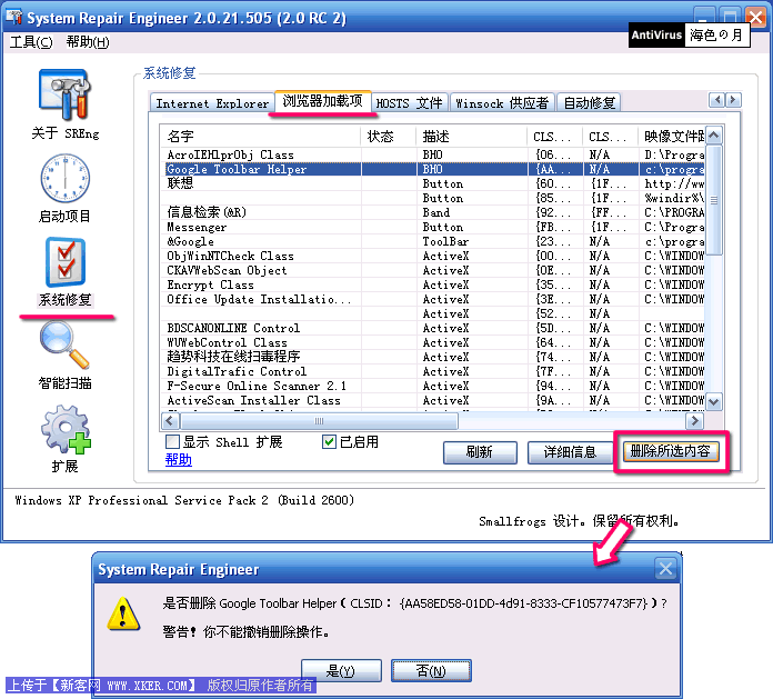 圖中舉例:恢復IE主頁為“空白頁” 和 修復Internet選項對話框內容設置的禁用。