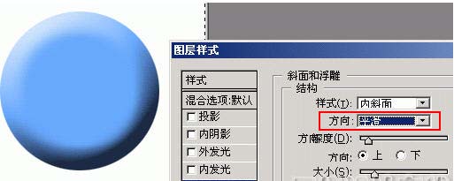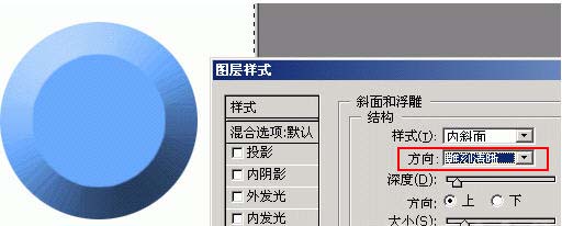 在這個例子中,圖層首先被賦予一個內(nèi)斜面樣式,形成一個突起的高臺效果,然后又被賦予一個外斜面樣式,整個高臺又陷入一個“坑”當(dāng)中,最終形成了如圖所示的效果。