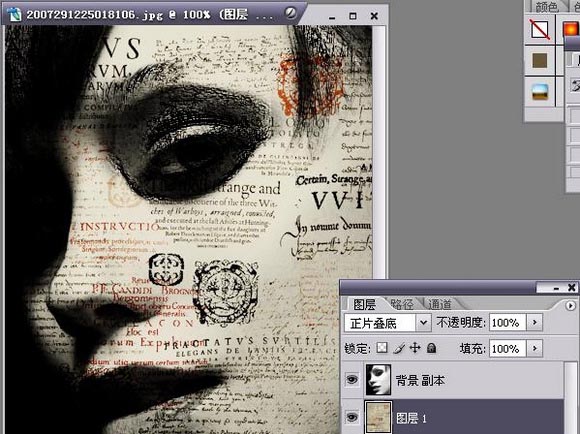 拉入一張圖片-模式正面疊底80%透明-復制背景層-放到最上方-柔光