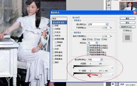 2、雙擊人物圖層,調出圖層樣式對話框,在混合顏色帶設置如下圖(按住Alt鍵即可分開拉動三角塊)。
