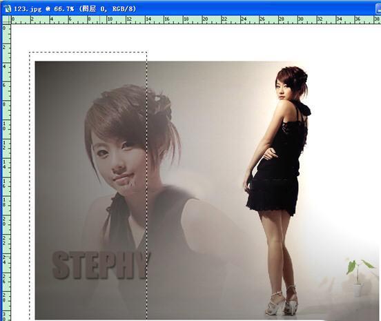 1、首先打開自己先準備好的素材圖片,然后用“矩形選框工具”勾出一個矩形選區,如果是要折疊三等分,這里就勾圖片的三分之一。