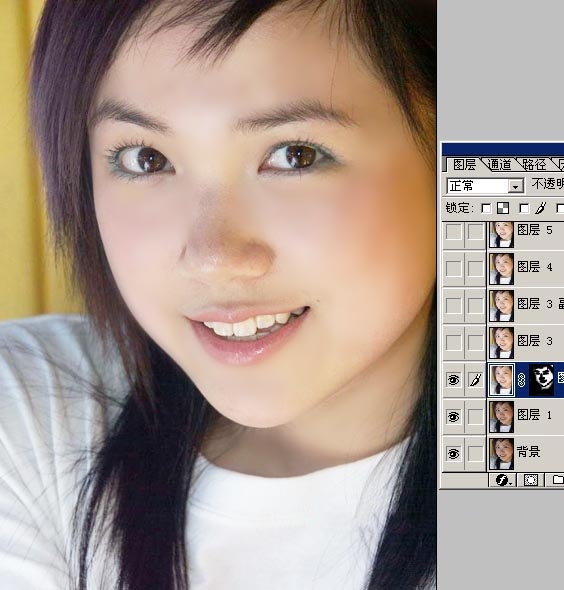 本教程主要是介紹人物磨皮及美白教程,有些人物照片可能是光線不夠,臉部會有大量的雜色,這些處理起來非常麻煩。處理不能一步到位只能慢慢的把雜色范圍縮小,方法也有很多。本教程也只是一個參考其中用到勾出選區模糊及用畫筆吸取皮膚顏色再涂等!你也可以嘗試一下其它方法!